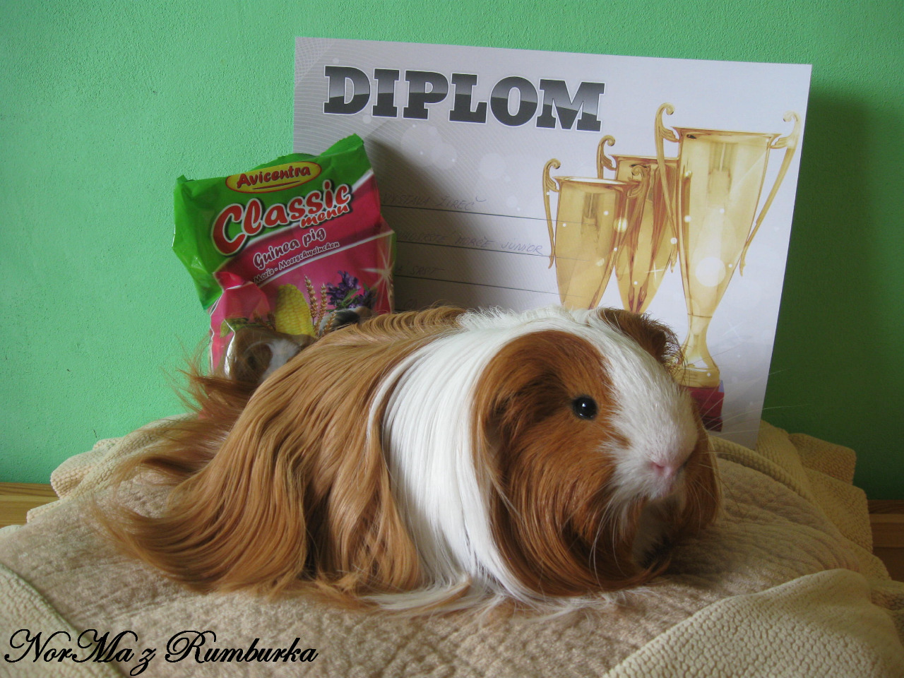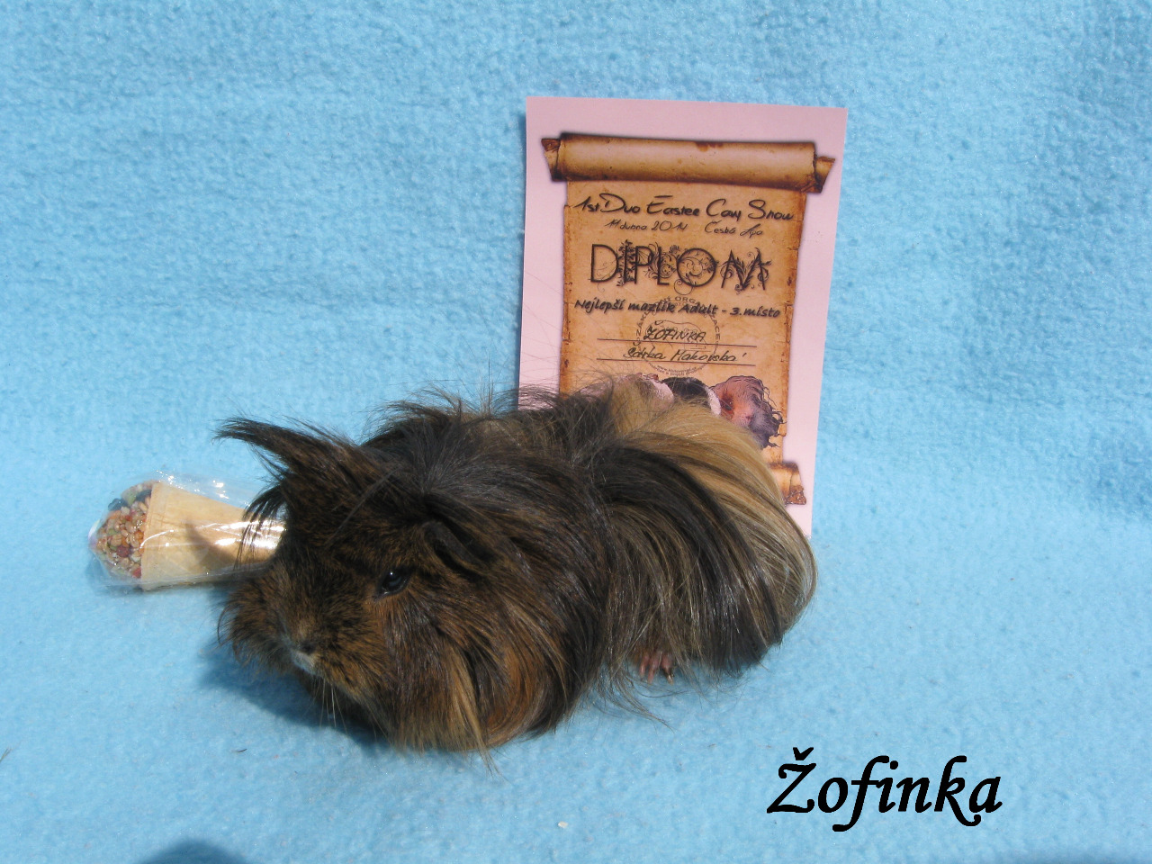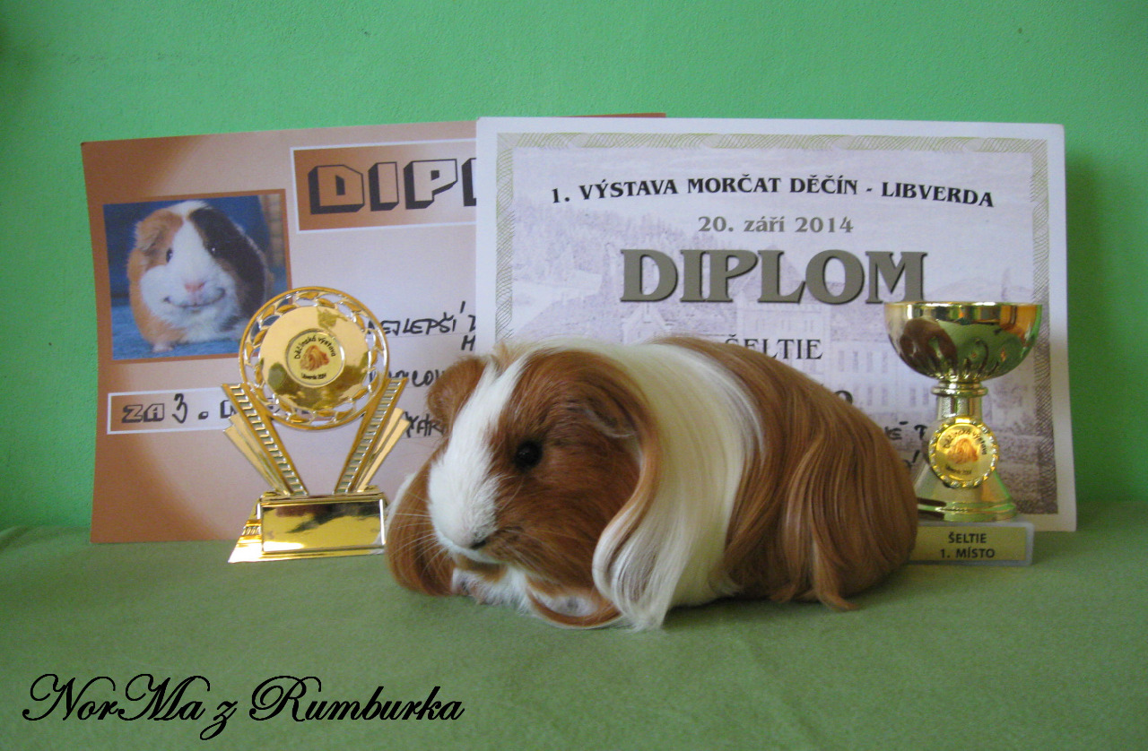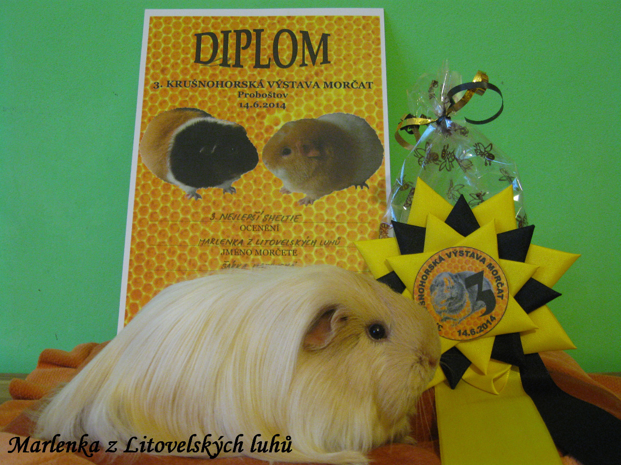 Nejlepší dlouhosrsté morče- 3. místo, nejlepší sheltie- 1. místo